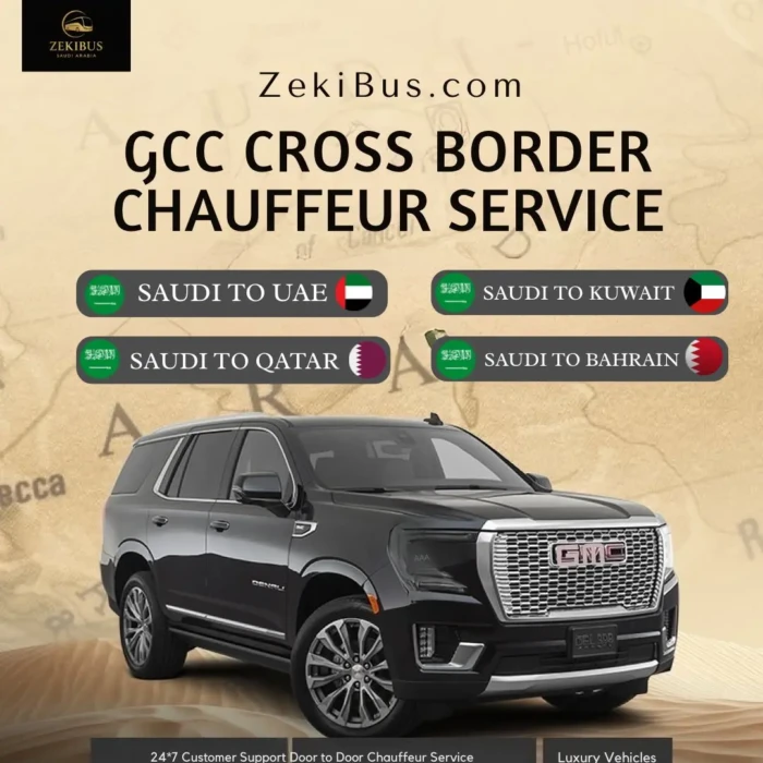 Travel in comfort with Saudi Arabia to UAE premium chauffeur services from ZekiBus. We provide safe, reliable, and luxury border transfer from Saudi Arabia to UAE with professional drivers and modern vehicles. Whether you are traveling for business, tourism, or group trips, our chauffeur service ensures a smooth journey across the GCC border.